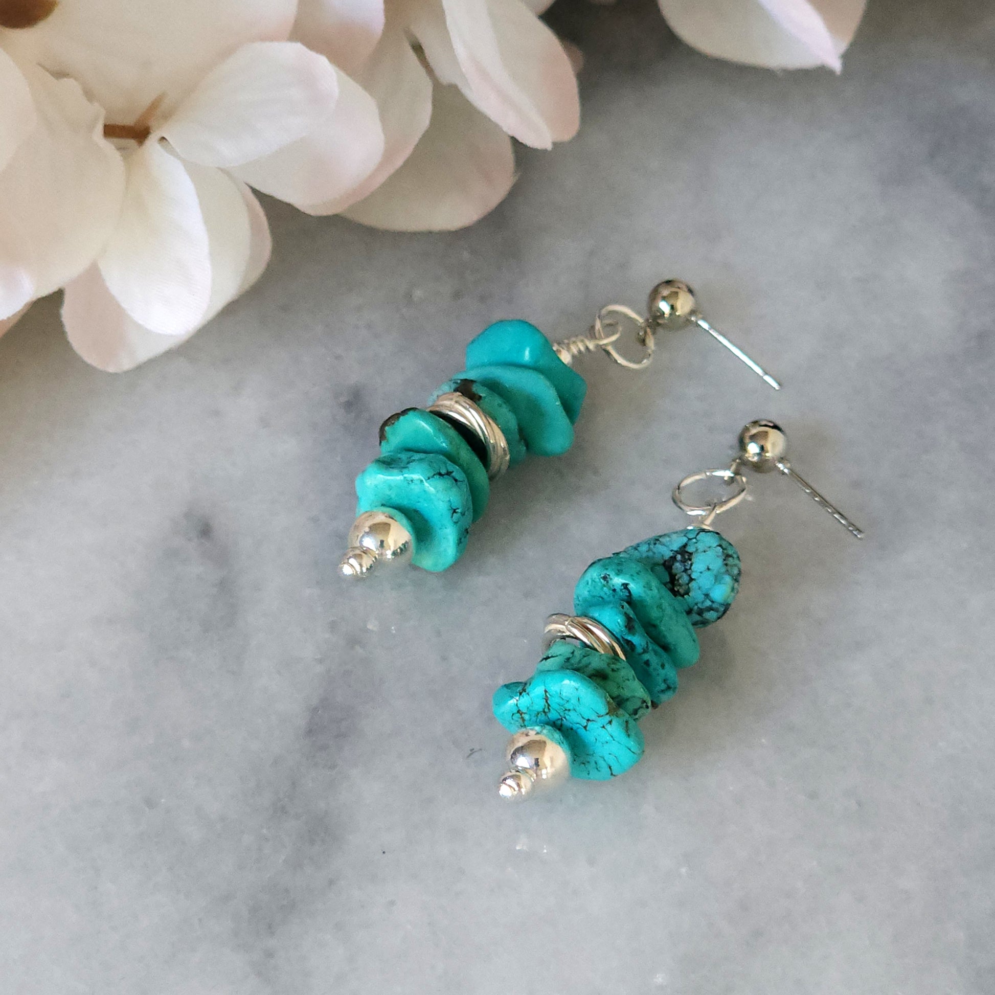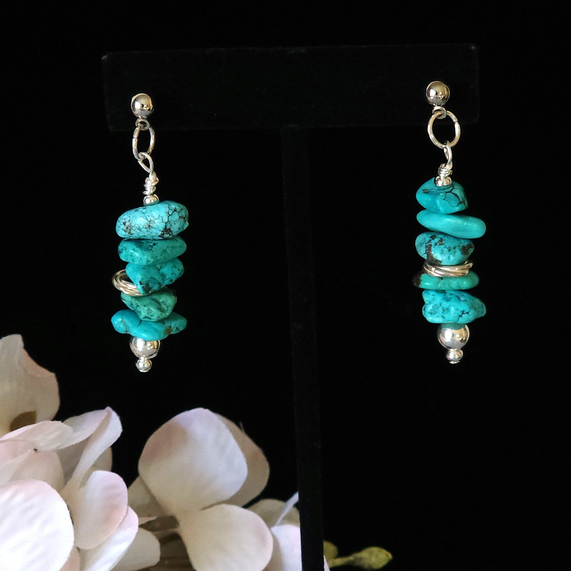 Vibrant turquoise howlite stones stacked with silver-plated accents bring a pop of bold, boho charm to any outfit. Lightweight and full of personality, these earrings add a splash of sunny, southwest flair wherever you go! 2" drop.