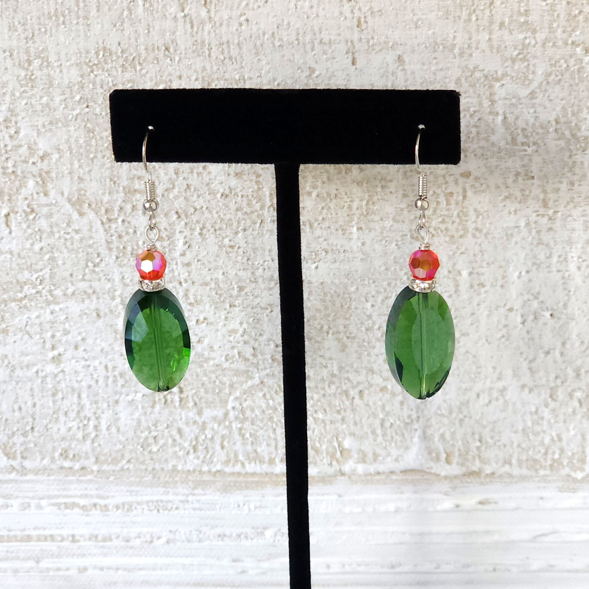 Sparkle with festive flair! These eye-catching earrings feature deep green glass paired with fiery red crystal and shimmering clear crystal rondelle accents. Set on sterling silver–plated, hypoallergenic ear wires, they’re lightweight, dazzling, and perfect for adding a merry pop of color to any look—holiday or not! 1.75" drop.